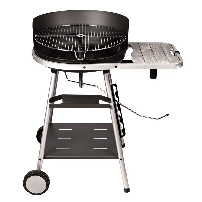 Μαντεμένια στρογγυλή ψησταριά κάρβουνου με σύστημα CREMALLIERE περιστροφής / ρύθμισης ύψους σχάρας και σύστημα TURBOMAGIC® για έτοιμα κάρβουνα για ψήσιμο σε 12′!.