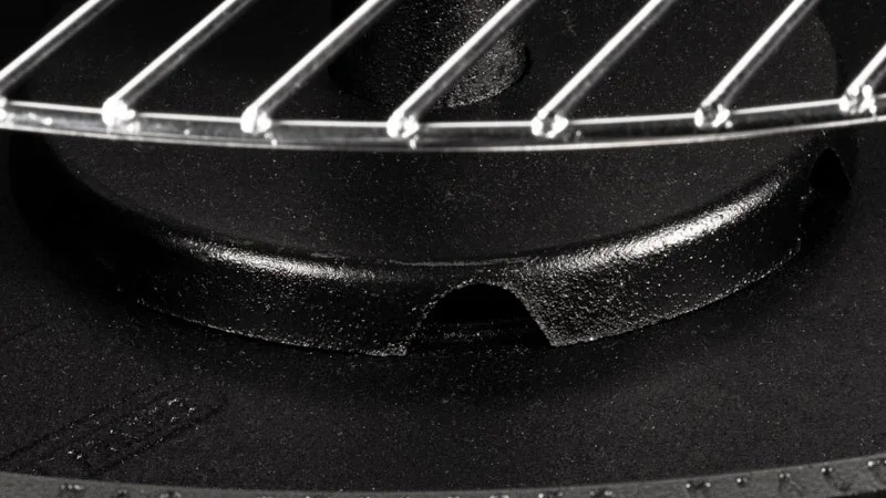 Μαντεμένια στρογγυλή ψησταριά κάρβουνου με σύστημα CREMALLIERE περιστροφής / ρύθμισης ύψους σχάρας και σύστημα TURBOMAGIC® για έτοιμα κάρβουνα για ψήσιμο σε 12′!.