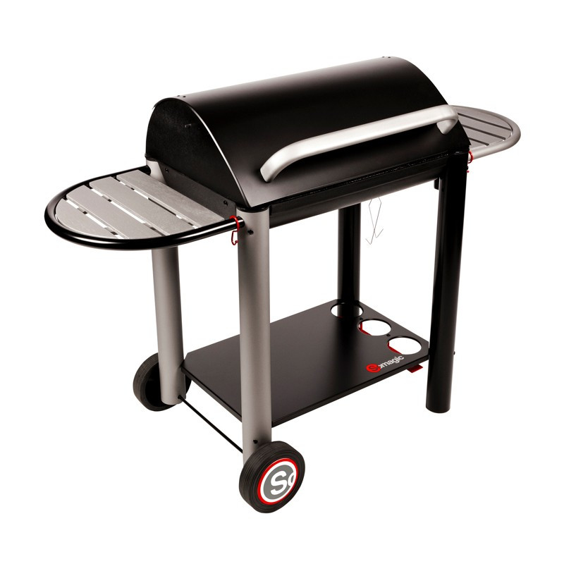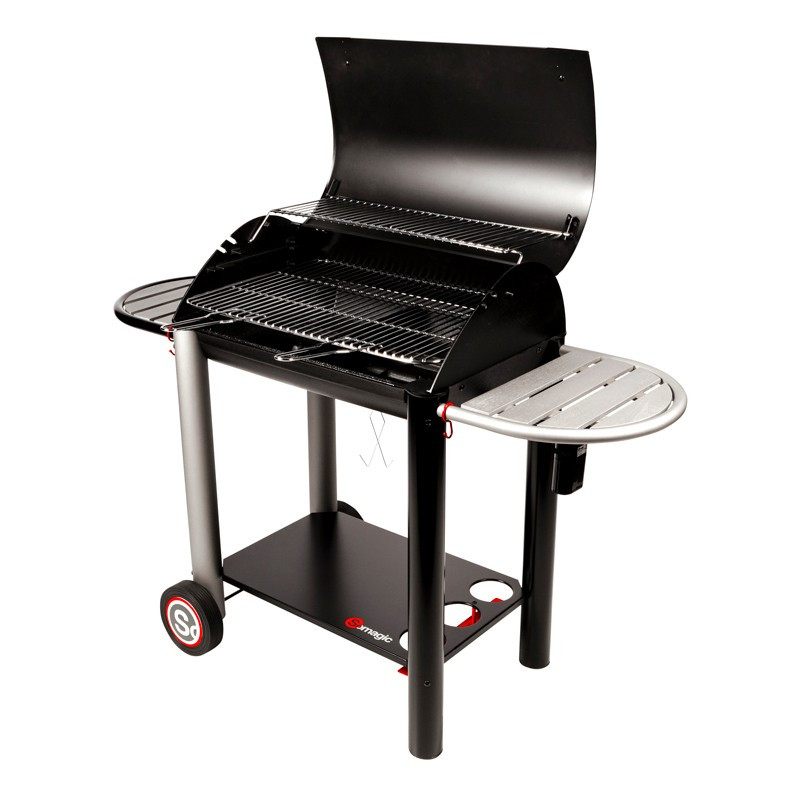 Μαντεμένια ψησταριά κάρβουνου με μεταλλικό καπάκι, πλαϊνά ράφια και χερούλι με ΤURBOMAGIC® σύστημα ετοιμασίας κάρβουνου μέσα σε 12 λεπτά μόνο!