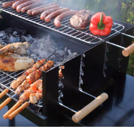 Μεταλλική εμαγιέ ψησταριά  με 2 ξεχωριστές σχάρες με ρυθμιζόμενο ύψος για 20 άτομα.
