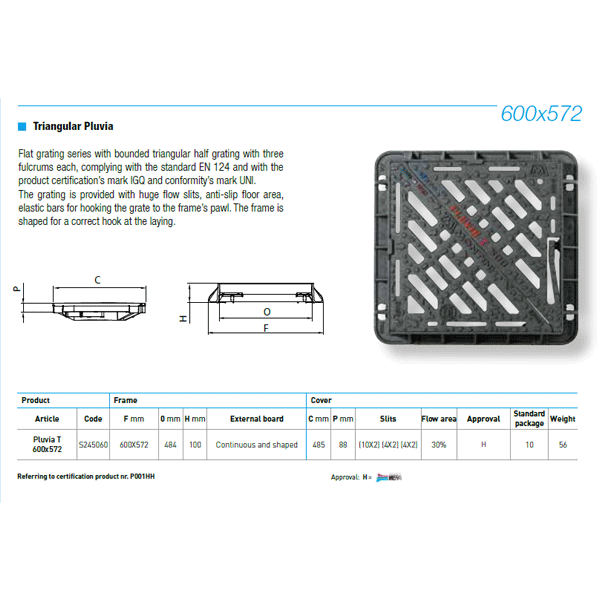 Σχάρα 60X57,2 D400 Μαντεμένια φρεατίων MONTINI PLUVIA T