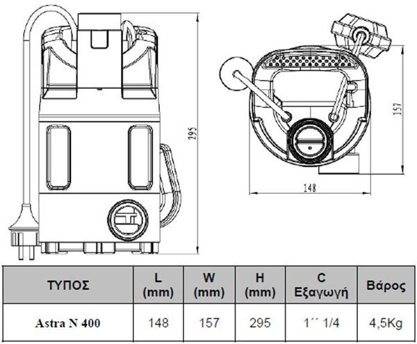 Αντλία Αποστράγγισης Όμβριων Astra N400 Kazis