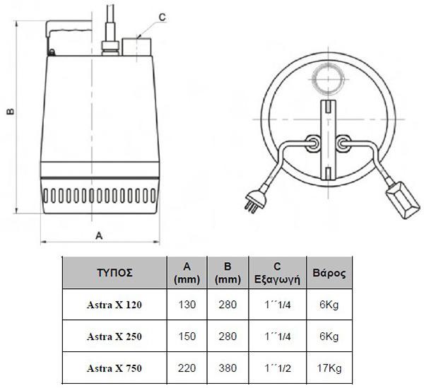 Αντλία Αποστράγγισης Όμβριων Astra X 120 Kazis
