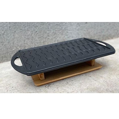 Με την ξύλινη βάση και την μαντεμένια πλάκα μπορείτε να ψήσετε επάνω στο τραπέζι με την βοήθεια δοχείου μεθανόλης ψηλά κομμάτια κρέας, λαχανικά, τυριά, φρούτα, ψάρι κ.α.
