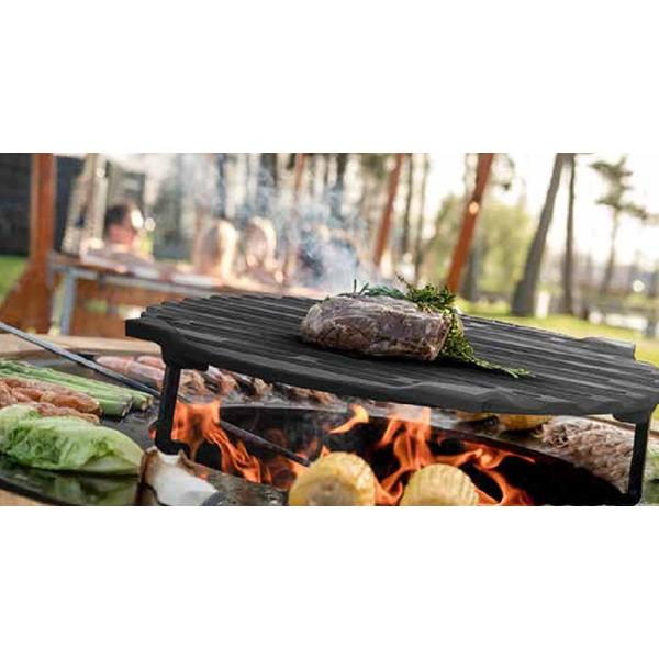 Μαντεμένια σχάρα ψησίματος Φ30 cm με ποδαράκια και λιποσυλλέκτη