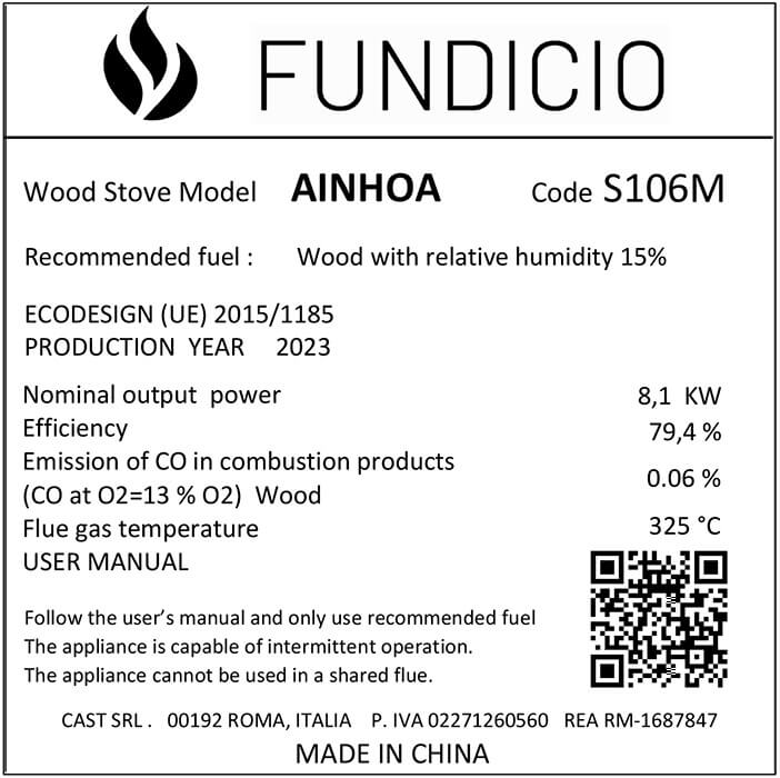 Το προϊόν έχει σχεδιαστεί, κατασκευαστεί και δοκιμαστεί σύμφωνα με τα Ευρωπαϊκά Πρότυπα (EN 13240) και ως εκ τούτου κατέχει τη σήμανση CE.