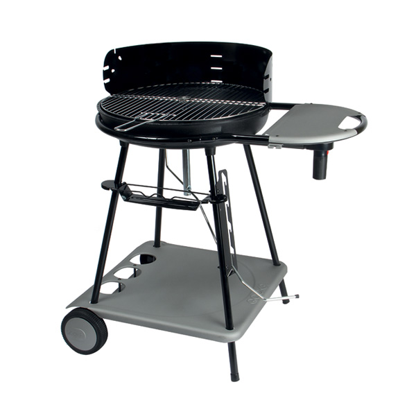 Μαντεμένια στρογγυλή ψησταριά κάρβουνου με σύστημα περιστροφής και ρύθμισης ύψους σχάρας CREMALLIERE και σύστημα TURBOMAGIC® για έτοιμα κάρβουνα για ψήσιμο σε 12′!. Είναι εύκολη, τόσο στον καθαρισμό, όσο και στην μεταφορά της.